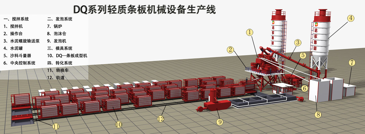 優(yōu)點:安全、靈活,可自行調(diào)節(jié)生產(chǎn)板材厚度50-200mm各類厚度板材,產(chǎn)量高、投資比例少、收益大,適合年產(chǎn)五十萬平方以上規(guī)模的板材生產(chǎn)