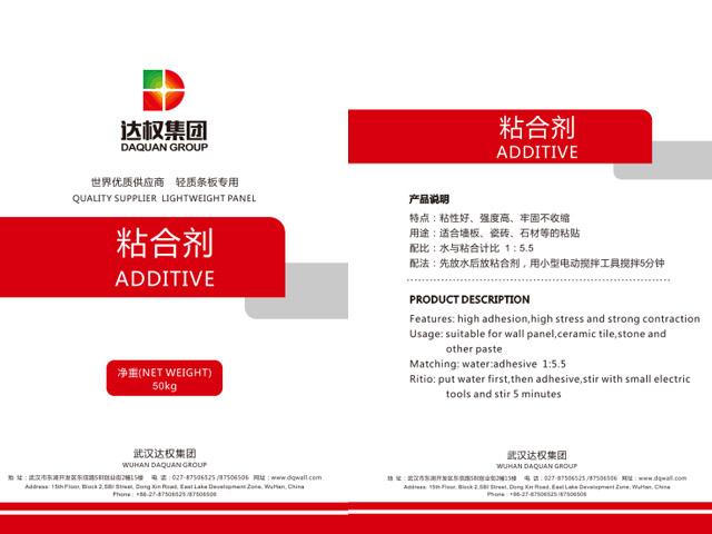 特點(diǎn):本品為安裝墻板專用粘合劑,也可直接用作瓷磚、石材等的粘料;具有粘合力強(qiáng)、防裂、防空鼓,方便施工等優(yōu)點(diǎn)。 使用方法:在施工現(xiàn)場(chǎng)加水適量,用電動(dòng)工具拌勻即可使用。 包裝要求:50KG/包。 保存方法:材料應(yīng)碼堆平放,高度10包為宜,注意防水防潮。